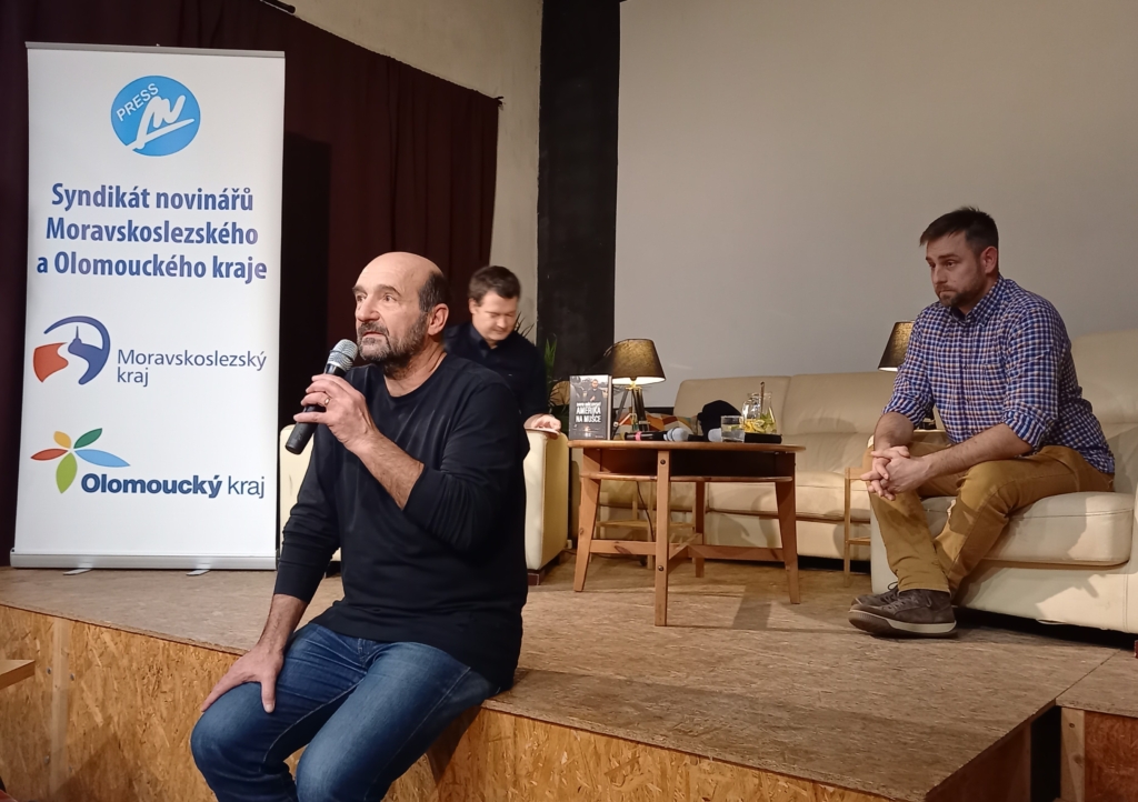 Na úvodním snímku ze zahájení první besedy v polovině ledna jsou zleva Jan Beneš, Petr Pánek a David Miřejovský.